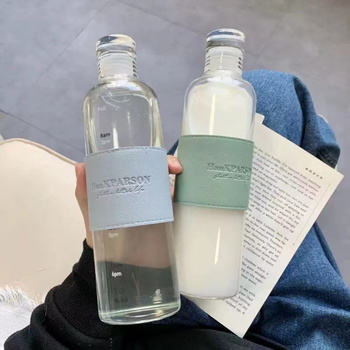 Botol air kaca borosilikat 17oz, botol air kaca borosilikat tinggi motivasi tahan panas dengan pembuat waktu musim panas
