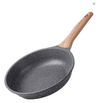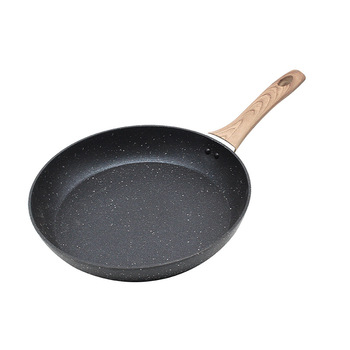 Sartén de 20cm de aluminio fundido a presión con piedra médica al por mayor, sartén antiadherente plana para bistec, uso de Gas por inducción con mango de madera