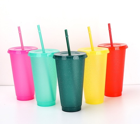 5 पैक 700 एमएल क्लासिक पार्टियों जन्मदिन ग्लिटर टंबलर 24 औंस प्लास्टिक पानी कप पुआल और ढक्कन के साथ